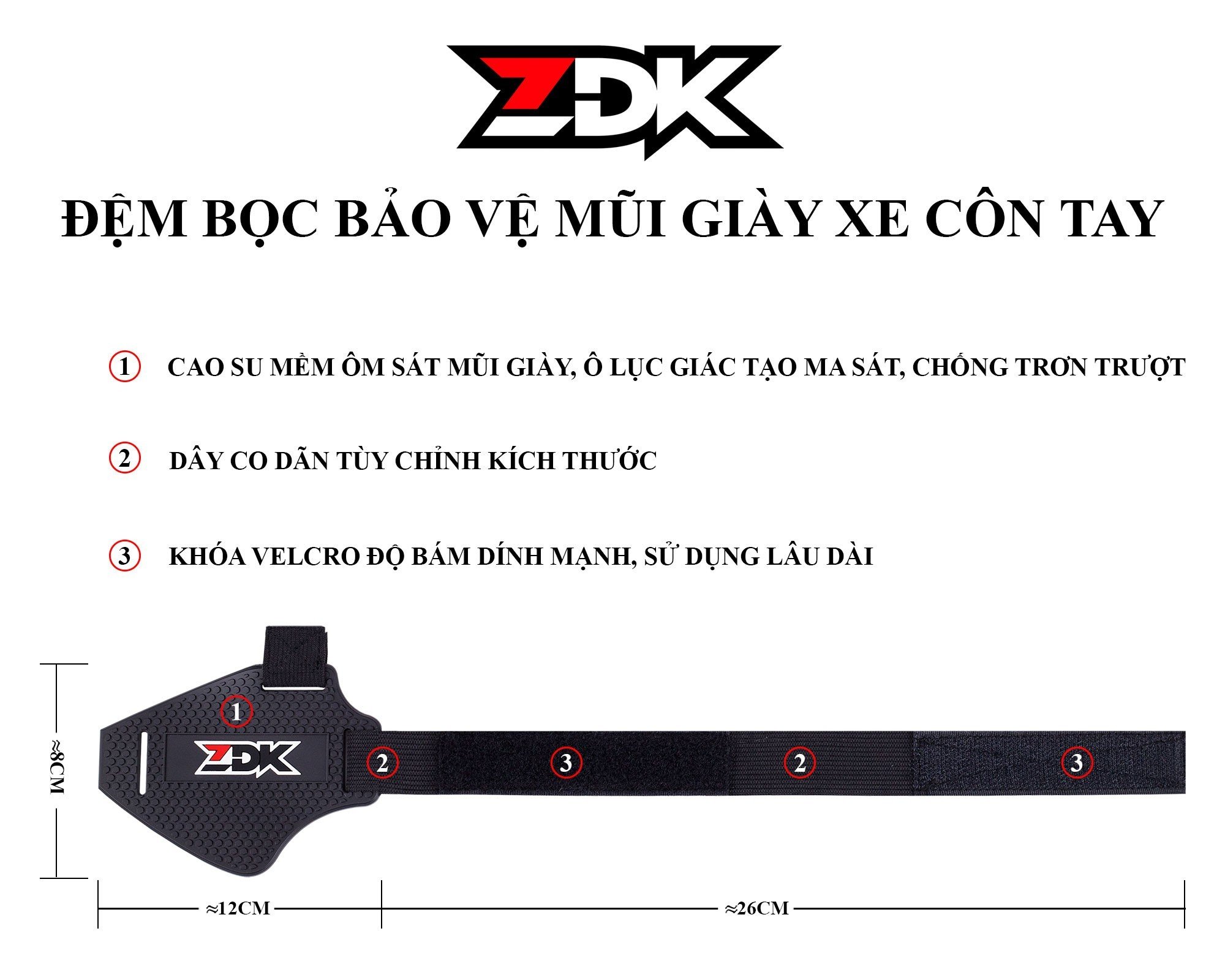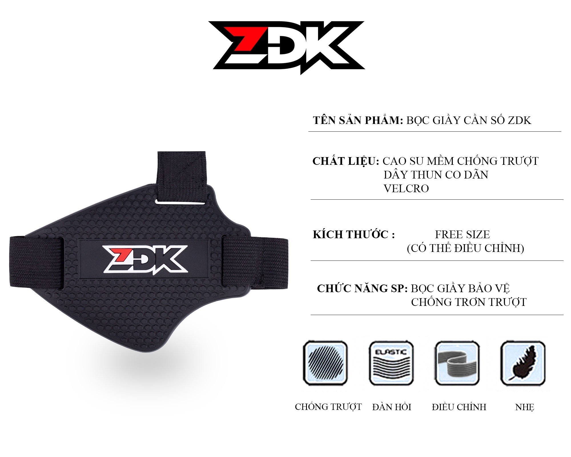 – Chất liệu: Cao su mềm chống trượt, thiết kế lồng ghép thương hiệu ZDK siêu sang