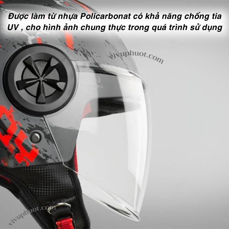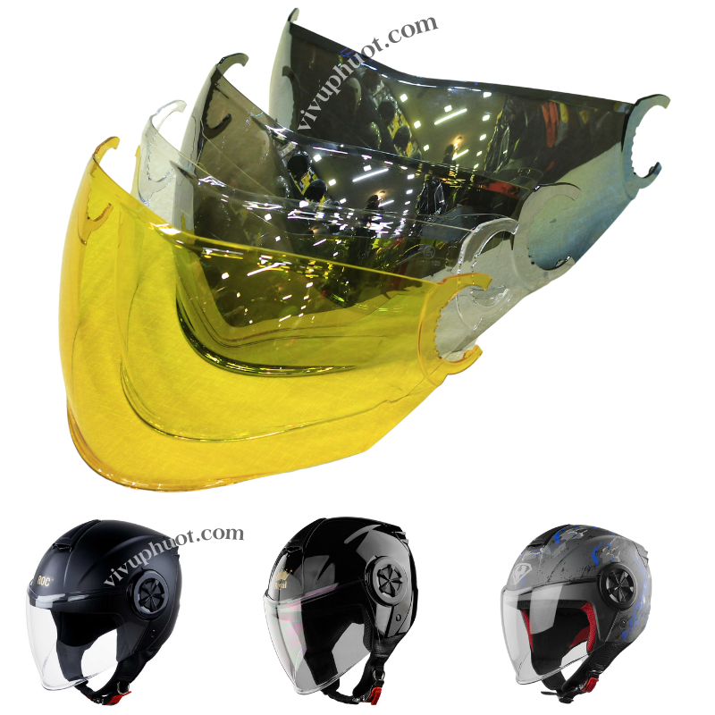 Ngoài kính màu trong mặc định khi mua nón 3/4 Yohe 851, bạn còn có thêm nhiều sự lựa chọn khác tùy theo sở thích và nhu cầu là kính màu khói, màu vàng và màu gương.