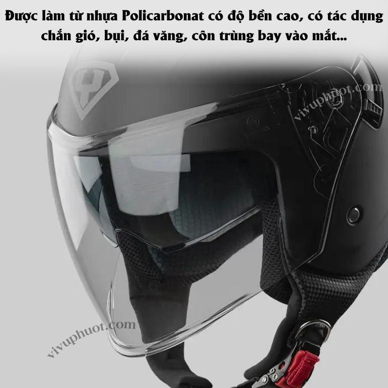PC có đặc tính chịu nhiệt, trọng lượng nhẹ, khả năng chống, chịu va đập cao, độ truyền sáng cao, trong suốt giúp tuổi thọ kính sử dụng lâu và bền hơn. Kính có độ phủ rộng che chắn toàn diện, hạn chế tối đa tác động của gió, mưa, bụi, đất đá, côn trùng…