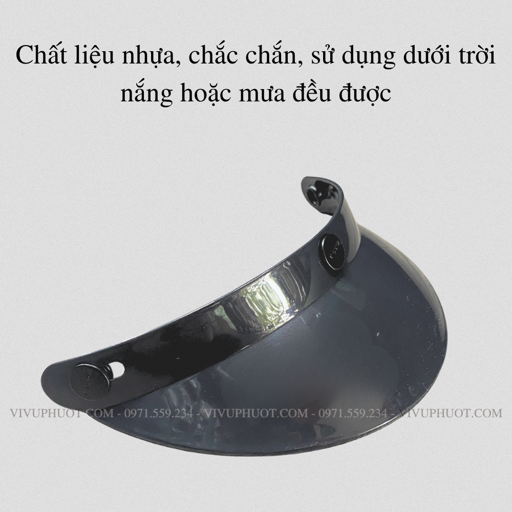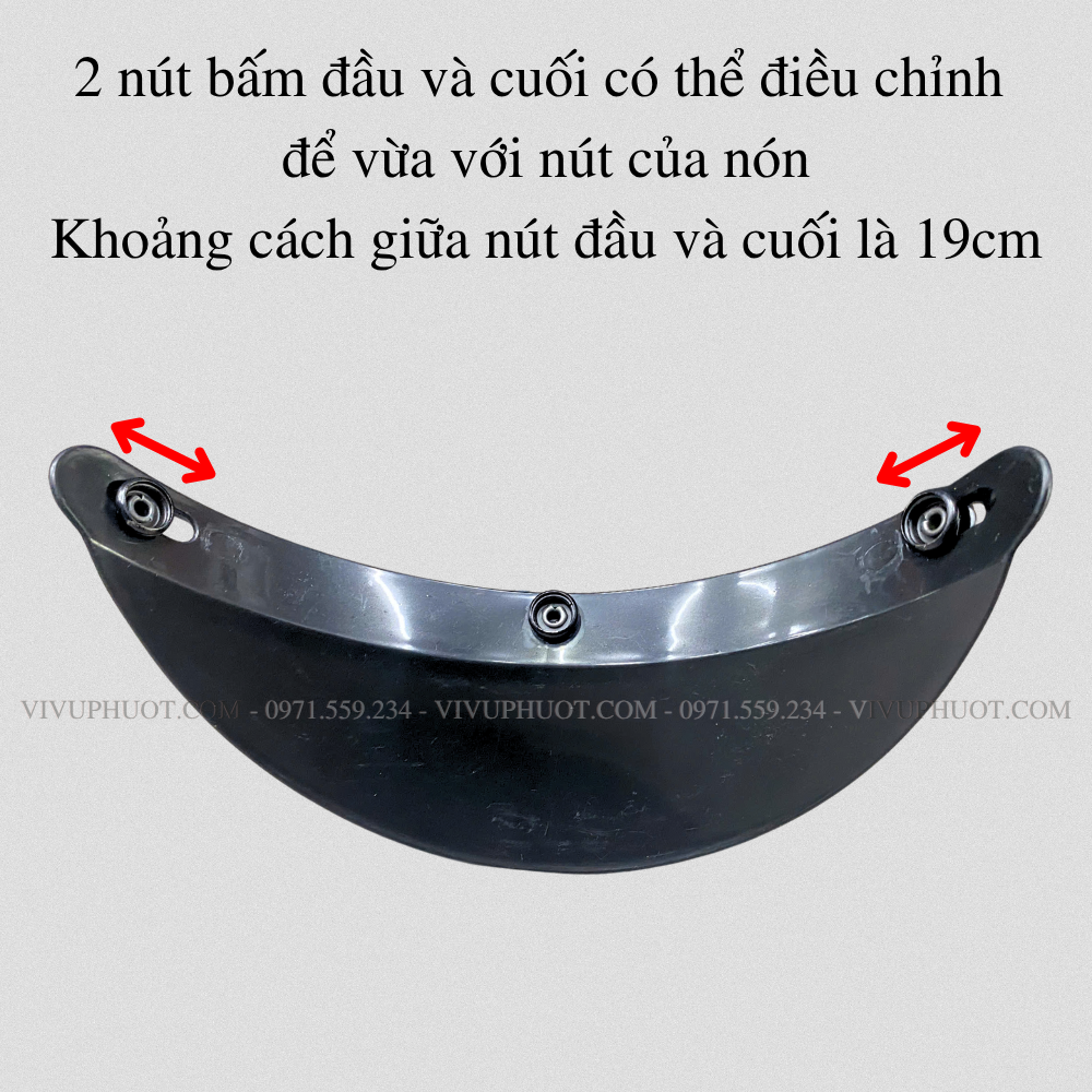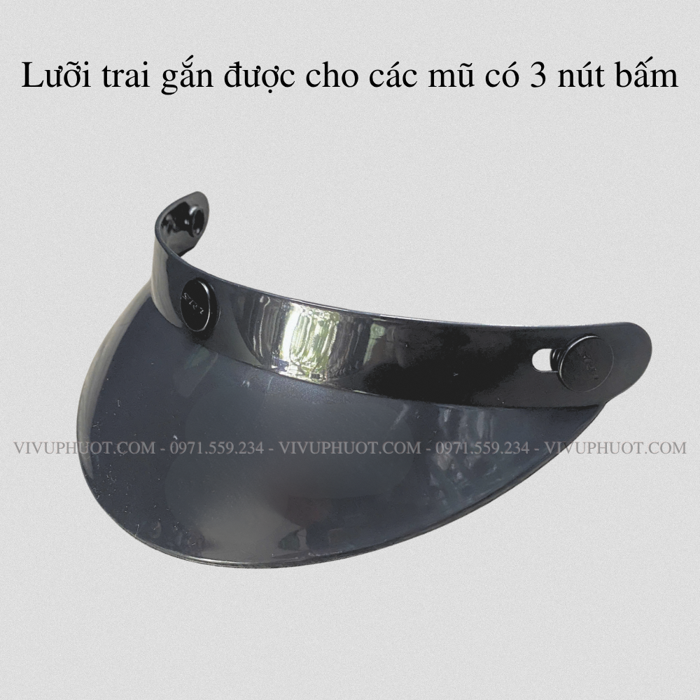 - Lưỡi trai gắn được các mũ 1/2 và 3/4 có 3 nút bấm ở trước mũ, phong cách cổ điển, phù hợp với các loại mũ