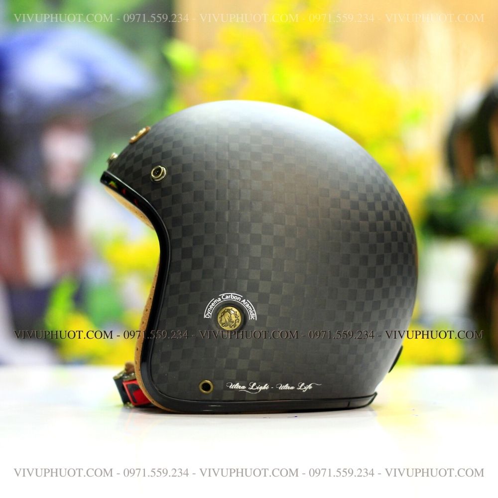 Mũ 3/4 Bulldog Heli Carbon Rubik là chiếc mũ bảo hiểm tinh tế tới từng chi tiết nhỏ.