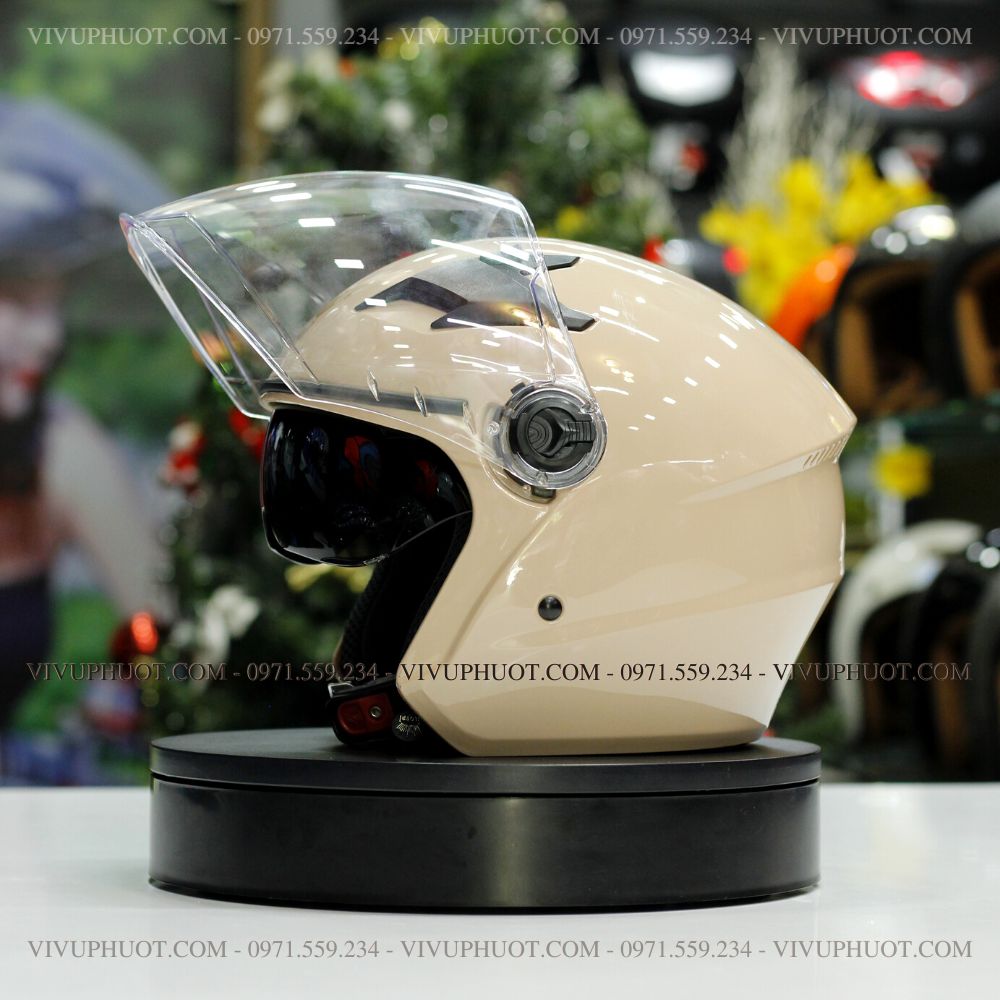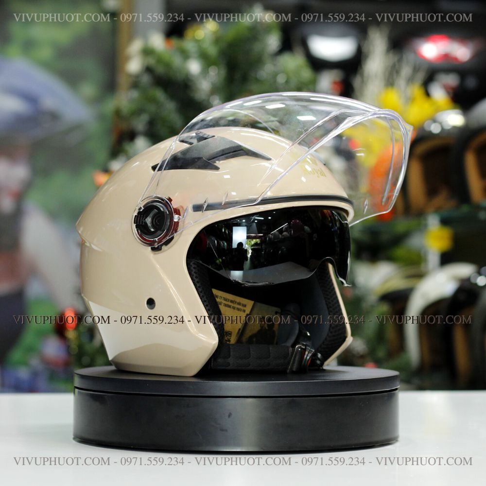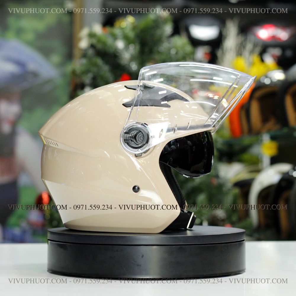 Với kính bên ngoài màu trong suốt chắn bụi, côn trùng, mưa, giọt bắn và kính phụ bên trong màu đen giúp dịu mắt khi đi nắng. Kèm theo đó là cảm giác đội thoải mái dễ chịu, phù hợp các chuyến đi ngắn, tốc độ trung bình.