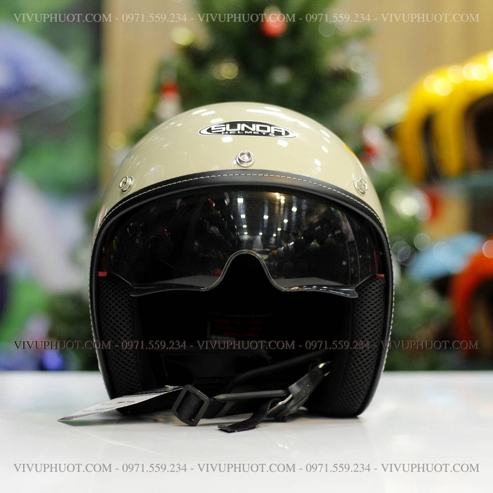 Sunda 388 là chiếc mũ sở hữu ngôn ngữ thiết kế này. Hãng dùng loại kính hình W, có màu trà giúp bạn dịu mắt khi đi trời nắng. Và nó cũng nhỏ gọn nữa, không cồng kềnh, nhìn rất thời trang.