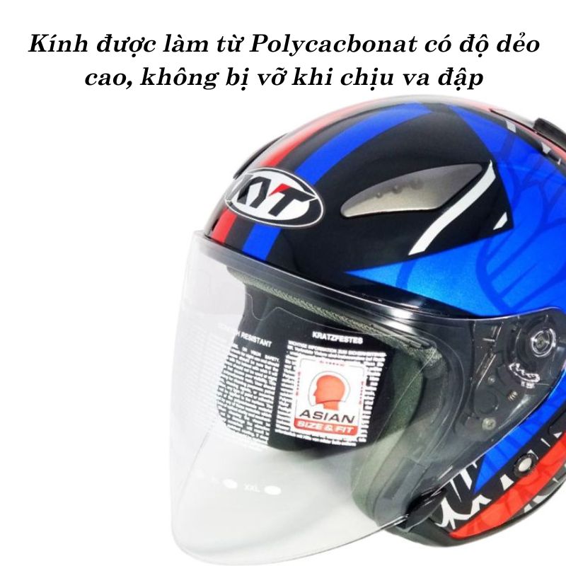 Kính chắn gió bên ngoài làm bằng Polycarbonate trong suốt, chống UV 380 và chống trầy nhẹ. Kính râm ẩn bên trong đỡ chói nắng, thao tác đóng/mở kính dễ dàng, nhanh chóng.