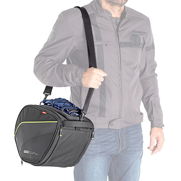 EA135 mẫu túi để bụng xe hoặc có thể ràng sau yên xe máy vừa ra mắt vào 2022 được làm từ chất liệu Polyester 600D và Polyester PU nhiều lớp đặc biệt form túi cứng cáp kèm dung tích 15Lít giúp người dùng đựng được nhiều đồ hơn. Givi Ea135 được hãng trang bị thêm dây đeo giúp người dùng có thể đeo chéo mang theo người.