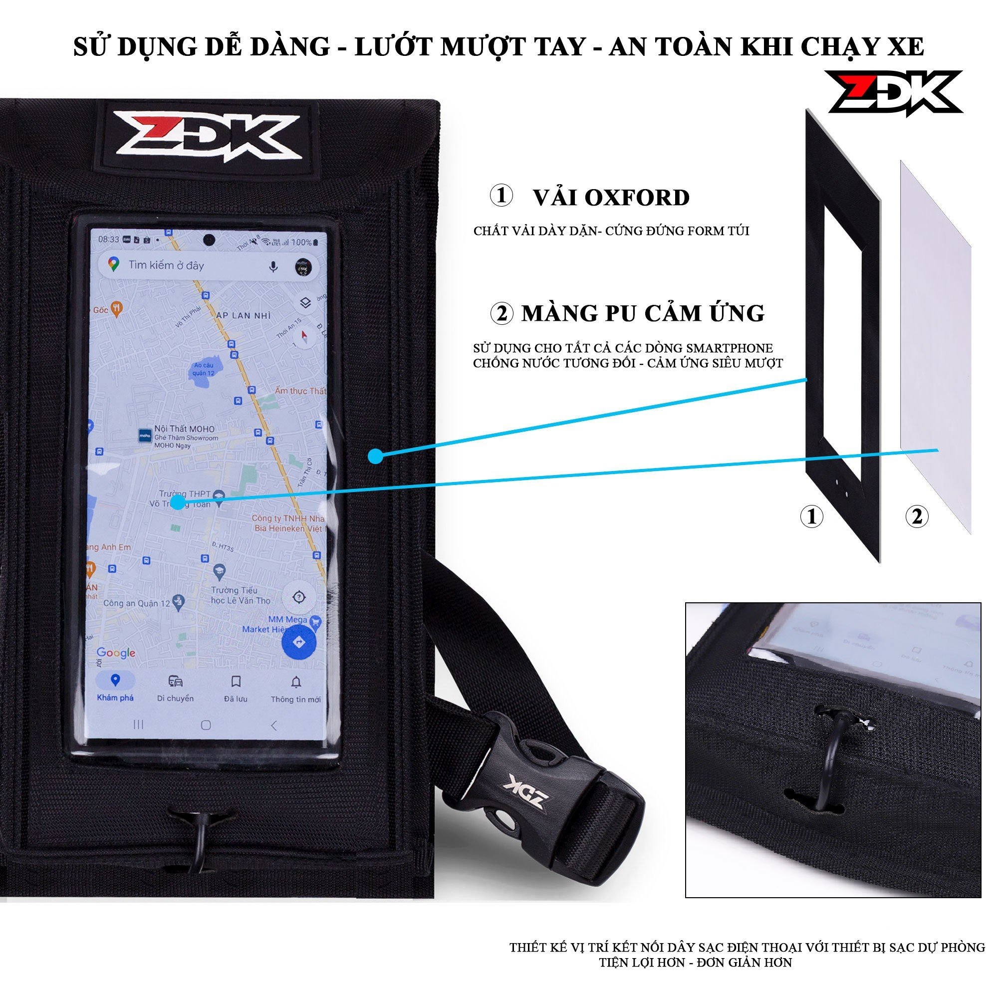 – Túi treo đầu xe máy đựng điện thoại chạy grab, cảm ứng được điện thoại, xem bản đồ